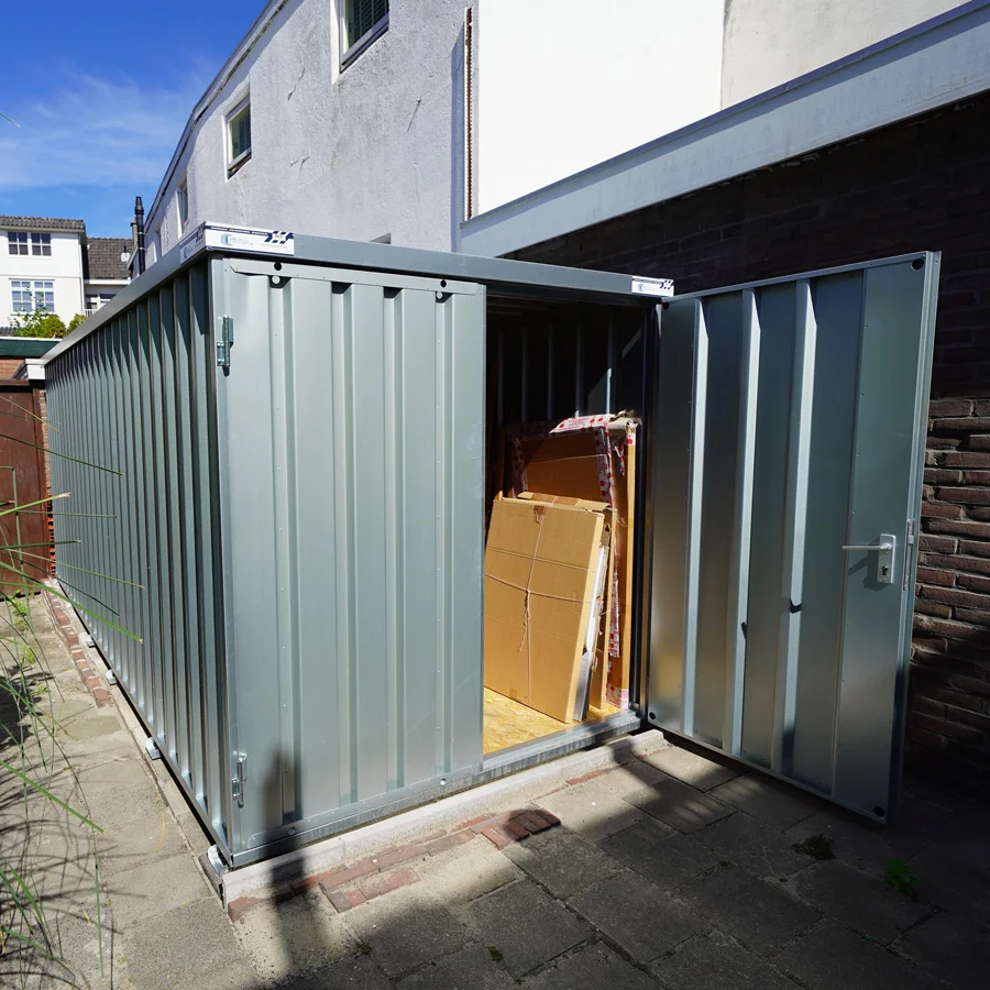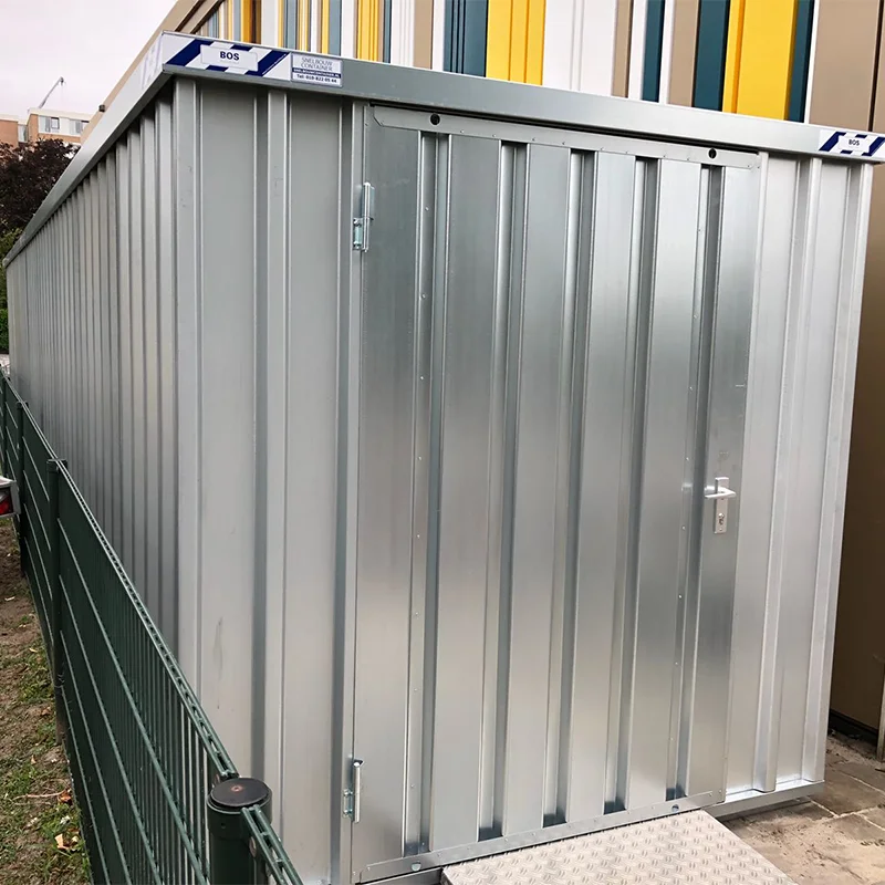 Notre conteneur démontable 5×2 est le choix idéal pour vous. Qu’il s’agisse d’un chantier de construction ou d’une zone industrielle, ou d’une utilisation privée pour le stockage de marchandises lors d’une rénovation, par exemple, le conteneur démontable est le conteneur qui vous offre, en tant que consommateur, toutes les commodités. Grâce au lourd plancher en bois OSB, le conteneur a une capacité de charge allant jusqu’à 500 kg par m2. Chaque conteneur démontable à montage rapide est équipé de quatre anneaux de levage prémontés sur le dessus et de supports métalliques pour chariot élévateur sur le dessous afin de faciliter le transport. Les parois en acier galvanisé de 0,8 mm d’épaisseur garantissent la résistance de votre conteneur rapide démontable au vent et aux intempéries ; le conteneur peut supporter une charge allant jusqu’à 210 kg par m2 dans la neige et des rafales allant jusqu’à 160 km à l’heure.